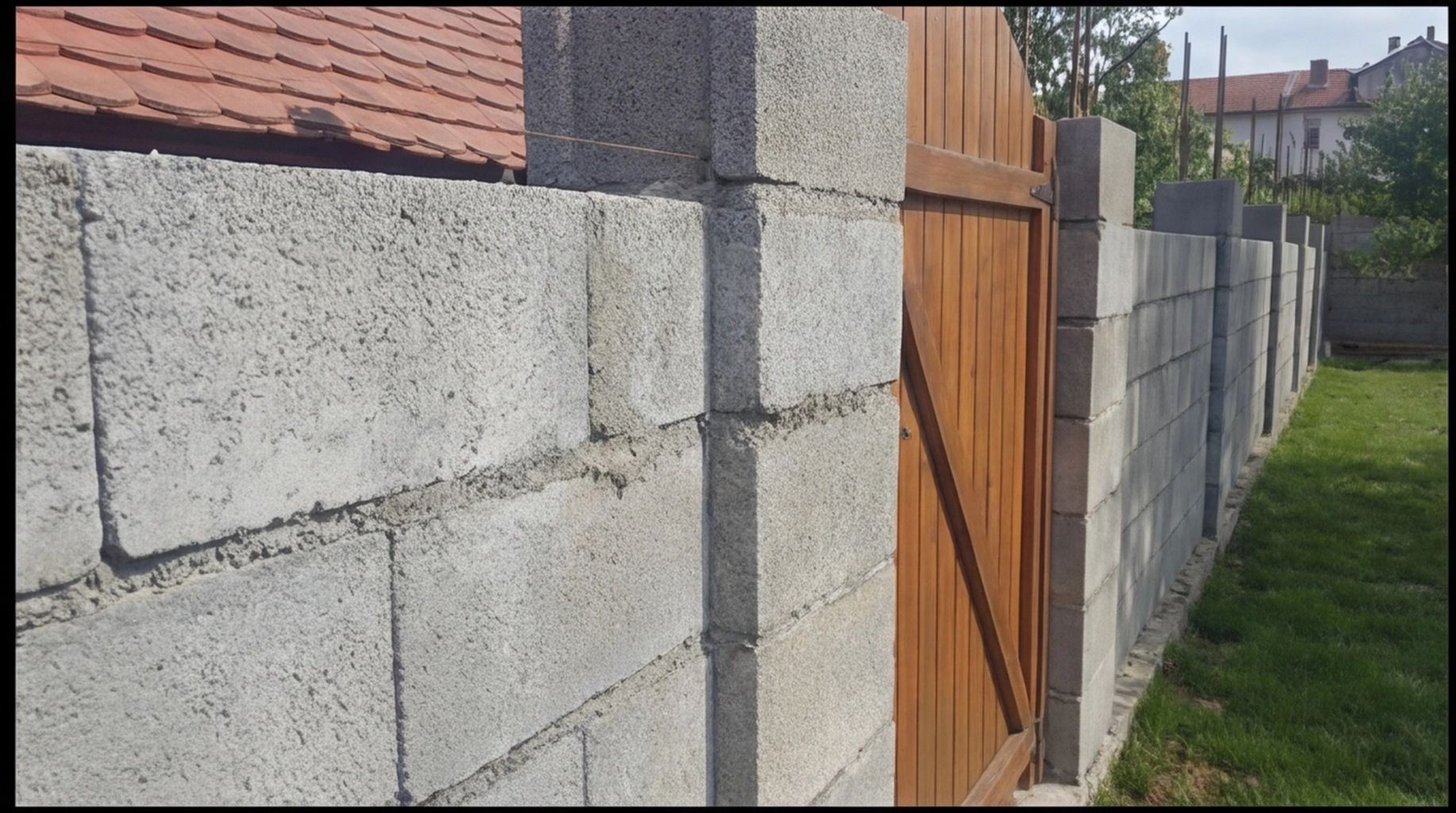 This project involved the construction of a new boundary wall using concrete blocks, designed to provide privacy and clearly define the outdoor space.